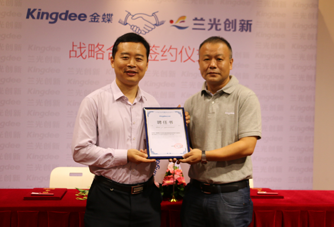 10月19日,金蝶与兰光创新战略合作签约仪式在金蝶深圳总部隆重举行。双方将携手在市场活动、智能工厂一体化解决方案及业务资源方面展开深度合作,通过产品、技术、资源以及行业经验相融合,为制造企业提供中国最领先的ERP/MES/APS/DNC/MDC智能工厂整体解决方案,帮助制造企业实现智能化转型升级,助力“中国制造2025”的早日实现。
