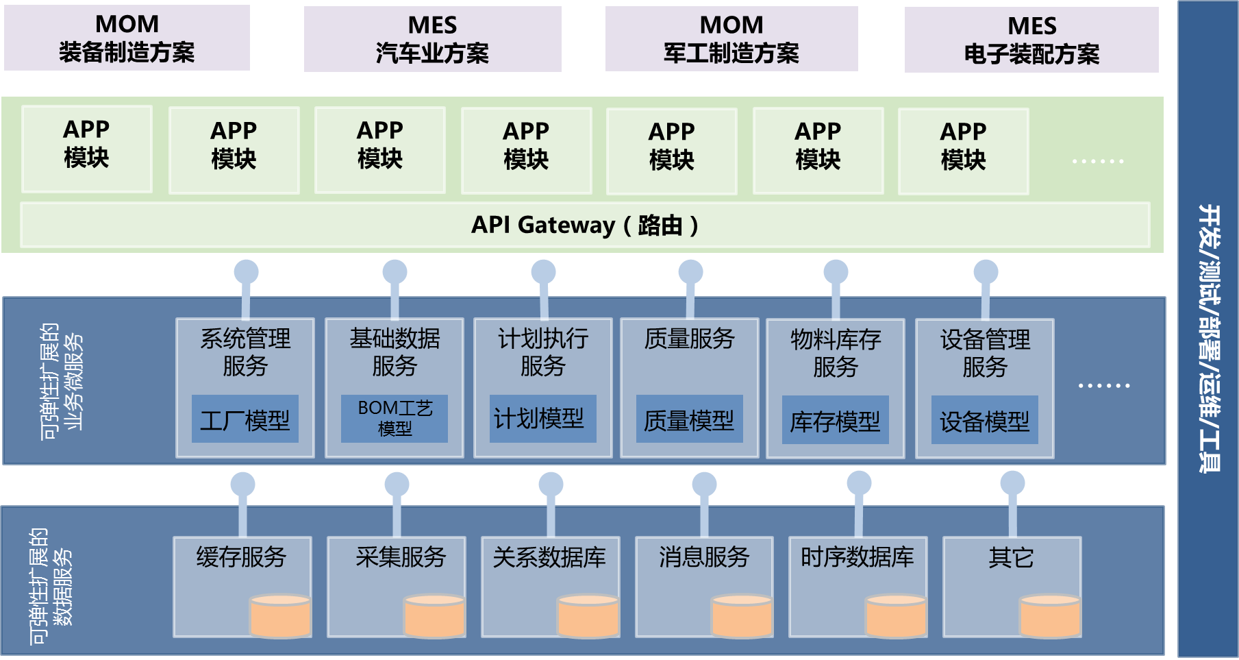 》》强大的微服务接口。平台内封装丰富的API接口,如基础数据、计划管理、现场作业、设备管理、质量管理、高级排产、数据采集、库房管理等,方便开发者进行高效调用,并提供全过程的日志监控,保证整个平台的持续更新和稳定运行。