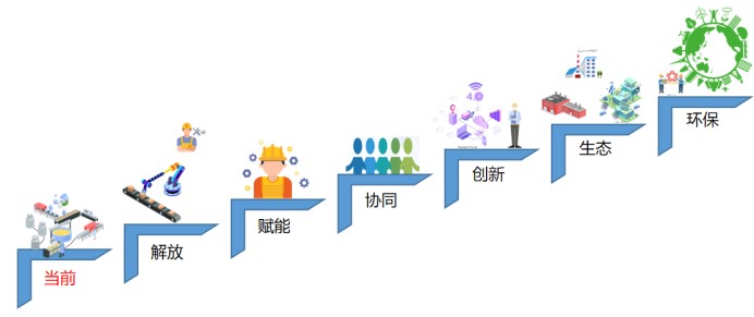 “六阶智能制造新体系”是一个以人为本、动态演进的体系。演进范围是由小到大,从外在到内在,从体力到脑力,从减压到赋能,从初级到高级,从个体到组织,从企业到社会,再到环境逐渐发展的过程,与“人法地,地法天,天法道,道法自然”的东方哲学思想也高度吻合。