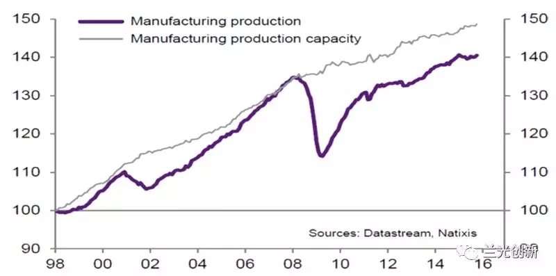 图2 制造业实际生产与产能的对比图 (来源:Datastream,Natixis)