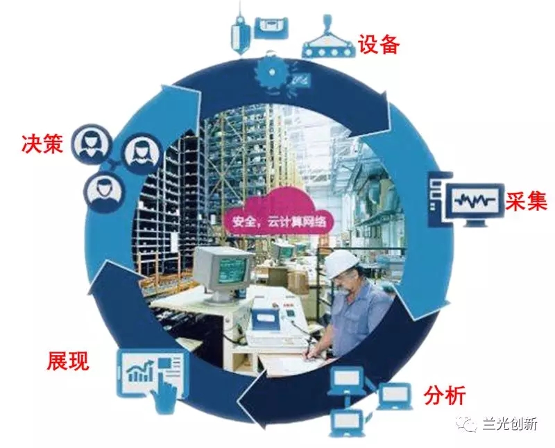 GE的工业互联网风靡全球,他们有一个数据价值链循环图,我们抽象地概括一下,就是设备、采集、分析、展现、决策,形成闭环迭代优化,这实际上就是将聋哑傻的设备进行采集、分析、优化,变成Smart的管控方式。