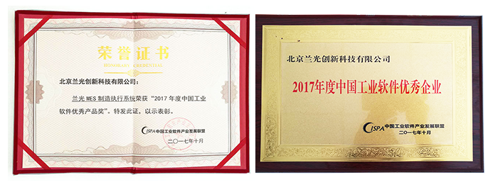 10月25日,兰光创新在“2017第八届中国工业软件发展高层论坛”上,再次被评为“2017年度中国工业软件十大优秀企业”,MES制造执行系统获得“2017年度中国工业软件优秀产品奖”。