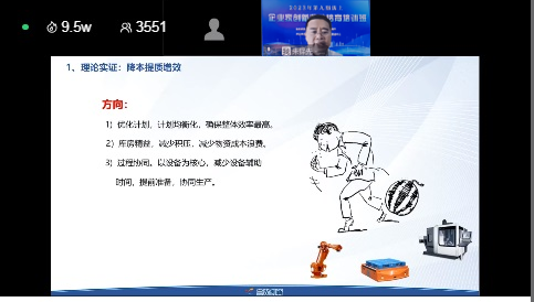由宁夏自治区科技厅主办、宁夏生产力促进中心承办的2023年第九期线上“企业家创新精神培育培训班”于6月25日成功举办。公司董事长朱铎先先生受邀作了《制造企业数字化转型之道》的专题报告。朱总基于后疫情时代,分别从数字化转型的必要性、各国数字化转型战略、数字化转型的方法与路径,以及制造企业如何以降本提质增效为中心进行数字化转型等进行了深入阐述,并以灯塔工厂、智能工厂等典型案例进行了三个小时的分享。