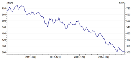 产能过剩的结果必然是价格的直线下降,这让钢铁企业叫苦不迭,整个行业进入了恶性竞争的低迷期。请见图4。