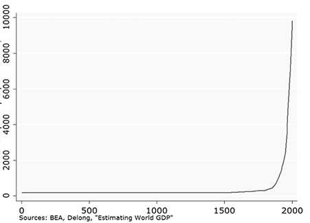 图6 世界GDP估算值的变化趋势 (来源:BEA,Delong)