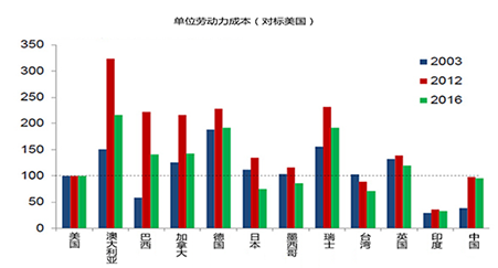 图9 单位人力成本与美国的比较(来源:牛津经济研究院)