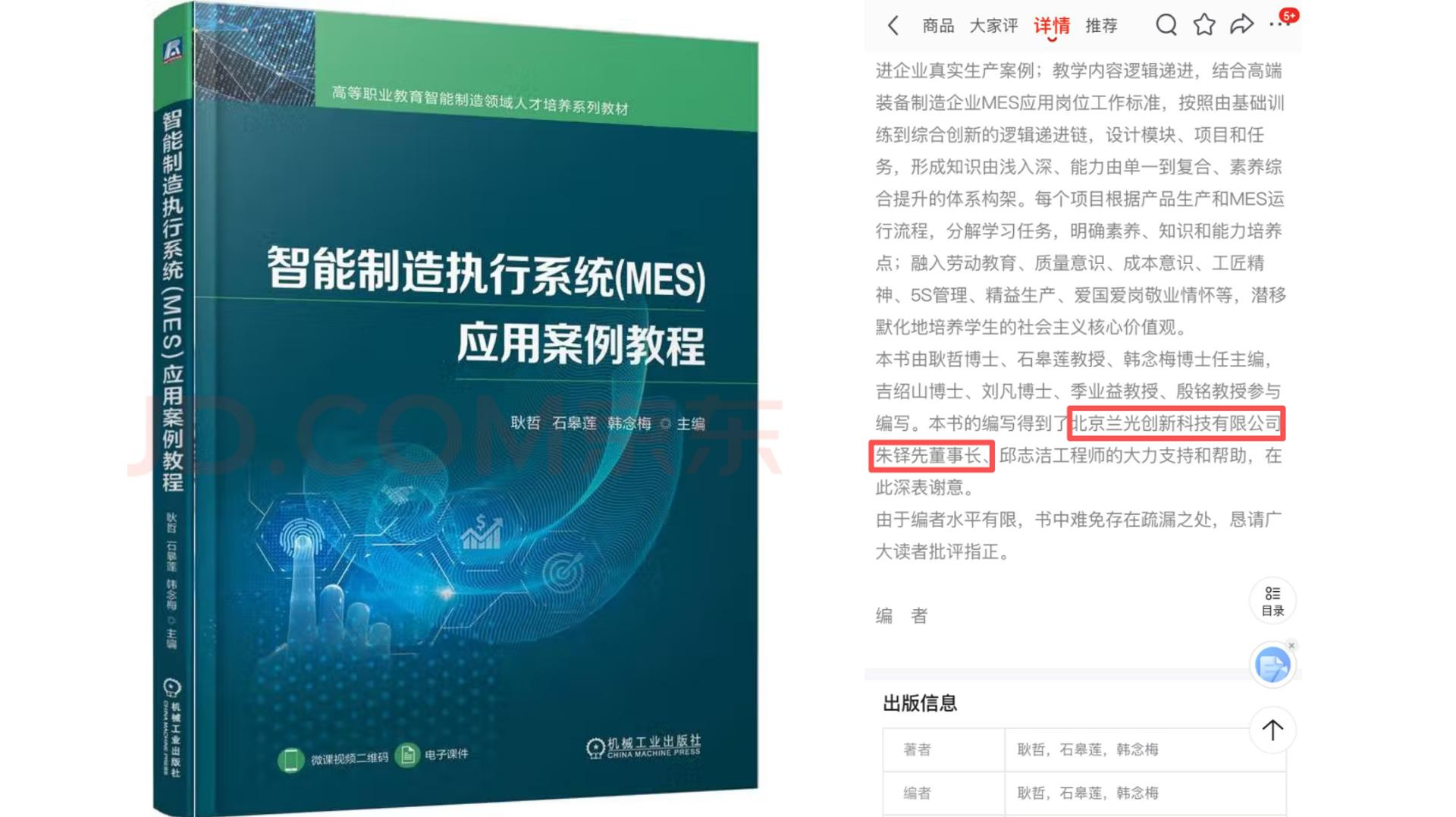 “智能制造,人才先行”已成为行业共识,但当前智能制造领域技能人才供需失衡、培养模式与企业需求脱节等问题,却成为制约产业升级的核心瓶颈。在此背景下,苏州工业职业技术学院(以下简称“苏工院”)充分发挥职业教育育人优势,基于兰光IMT智能制造实训系统编写的《智能制造执行系统(MES)应用案例教程》正式由机械工业出版社出版发行。作为苏工院深耕智能制造人才培养的标志性成果,该书以兰光MES制造执行系统、设备物联网系统等核心技术为支撑,成为破解人才培养难题的重要教学载体。