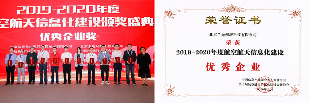 本次大会还对为航空航天信息化建设方面做出突出贡献的企业和个人进行了表彰。凭借航空航天领域上百家数字化建设案例,兰光创新荣获“2019~2020年度航空航天信息化建设优秀企业”奖。