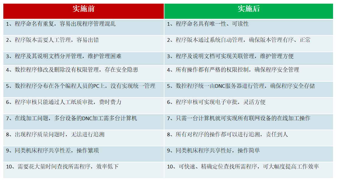 为了将三一集团打造成世界级智能示范工厂,实现三一集团数字化、智能化转型的整体目标。通过实施设备互联1.0和2.0系统,实现设备透明化管理。然而,在数控程序传输方面仍采用U盘、CF卡等传输方式,效率低且存在感染病毒等安全风险。数控程序文件分散在工艺、设备端;数控程序从产品设计到生产加工缺少版本过程管控,产品质量得不到保障,因此迫切需要通过部署DNC系统,实现对数控设备的数控程序代码过程管理,数控程序代码远程调用与回传,从而规避以上风险,确保产品设计与生产的一致性,以达到生产作业提质增效目的。